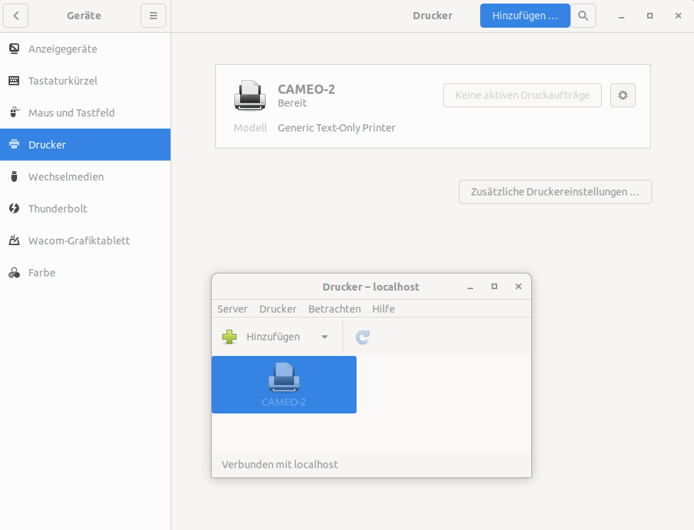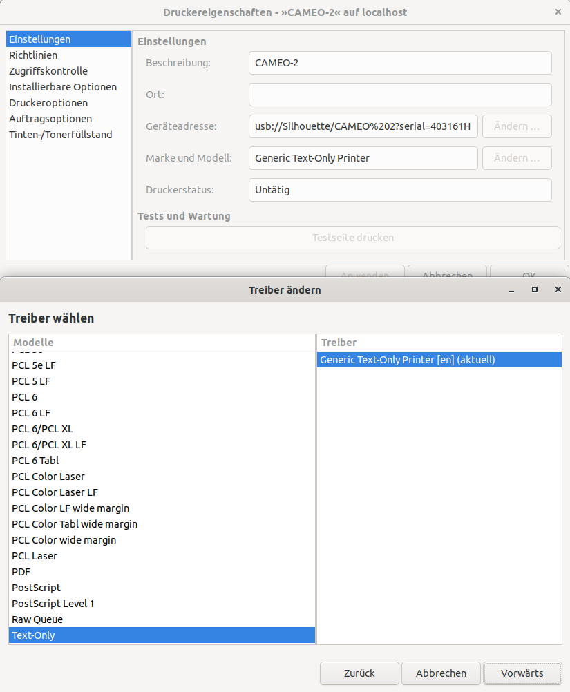 Then, I added the cutter as a printer, choosing Raw Queue Driver